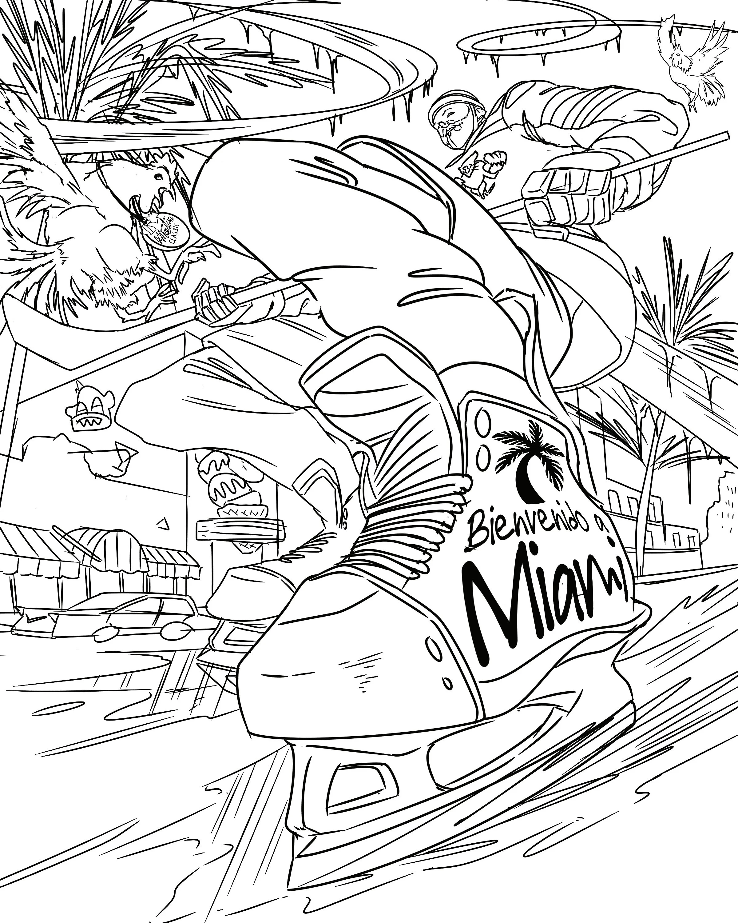 Illustration commissioned by the NHL and Florida Panthers commemorating the 2026 Winter Classic competition. The scene depicts a Florida Panthers player skating through the streets of Little Havana, Miami, where the Winter Classic was held.