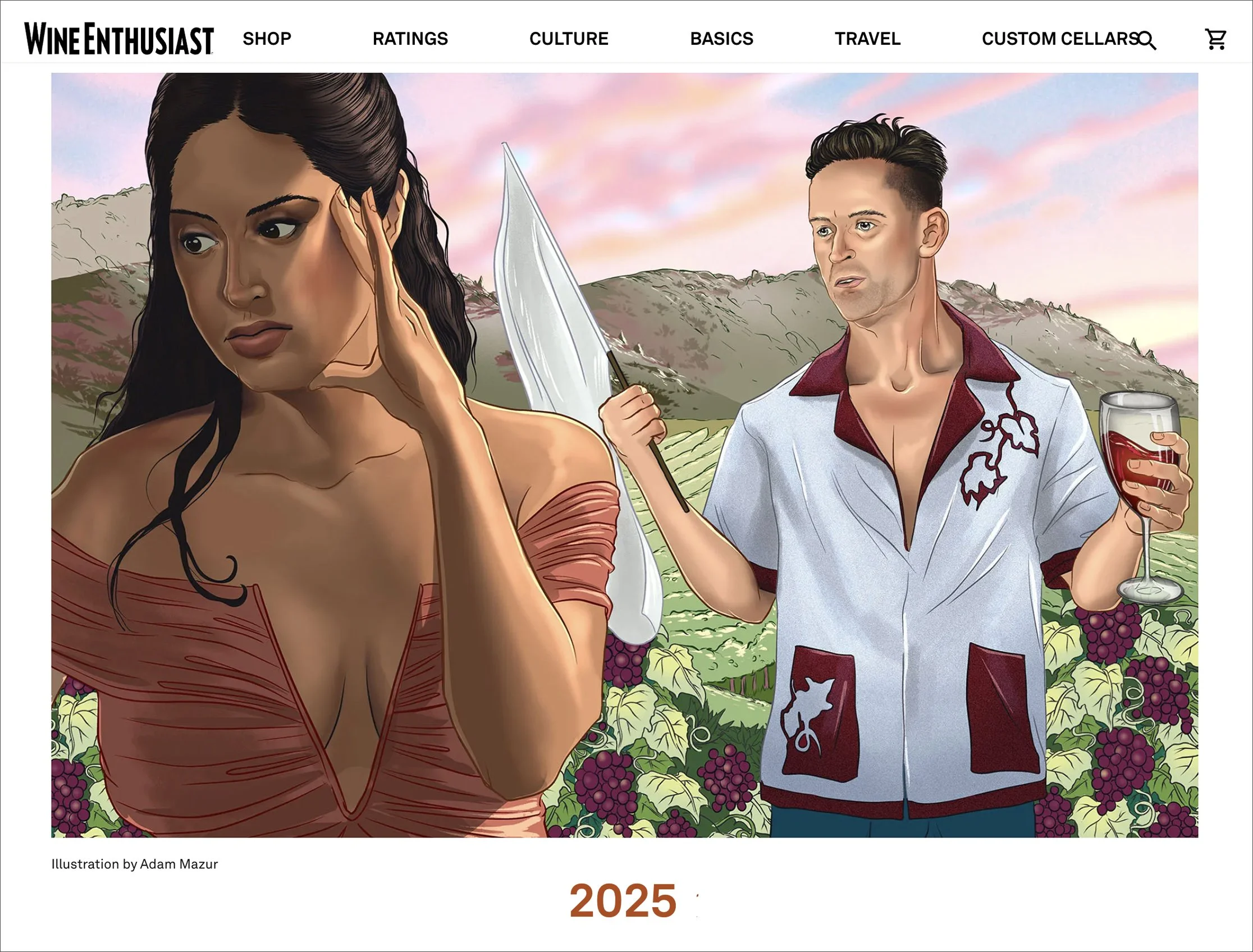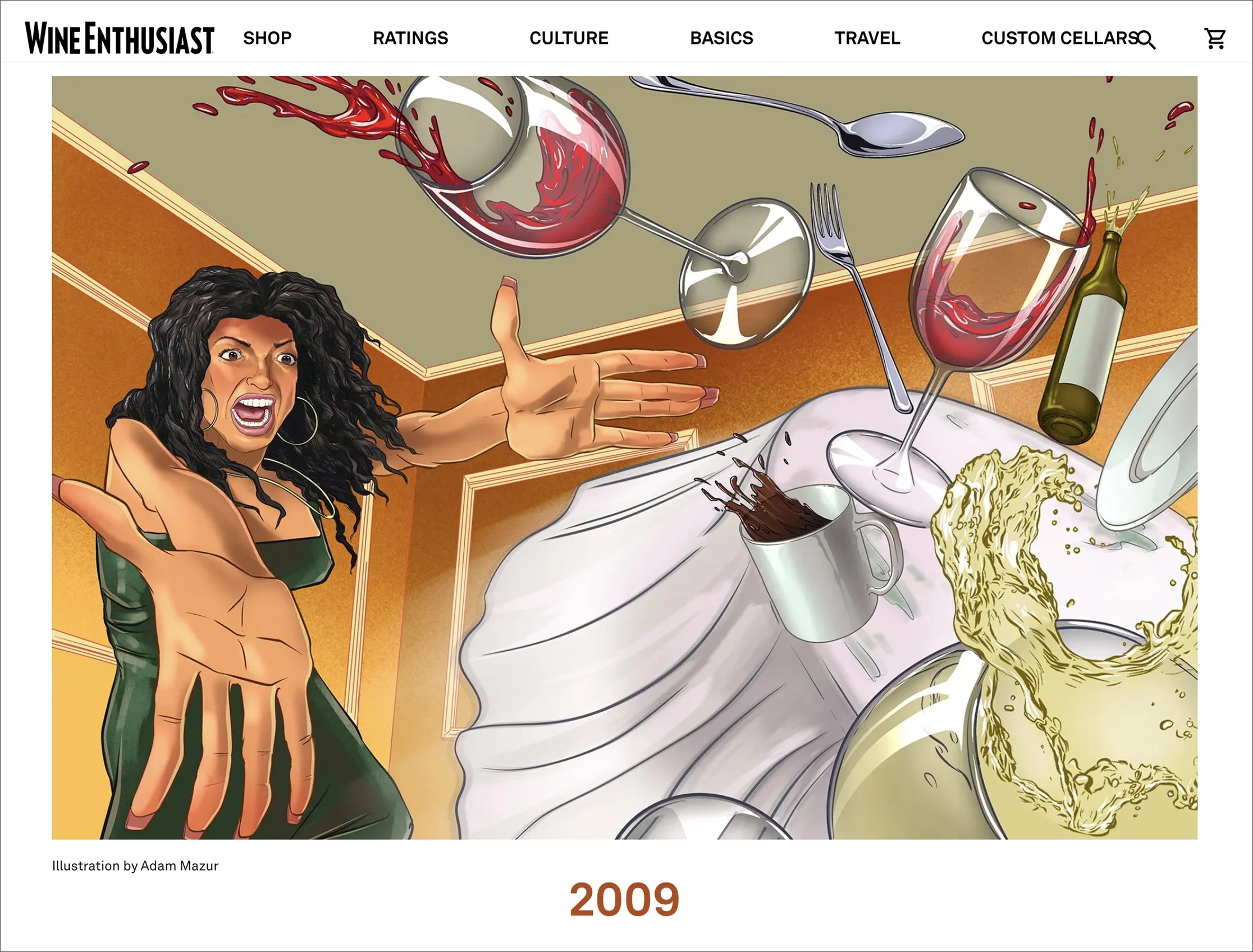 Four illustrations created for Wine Enthusiast as part of a greater timeline about the history and influence of wine throughout many of the reality television shows on Bravo.